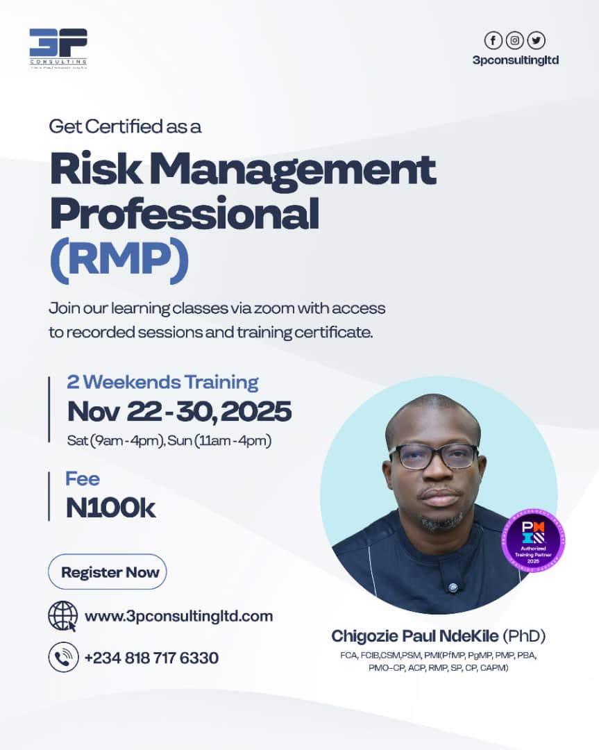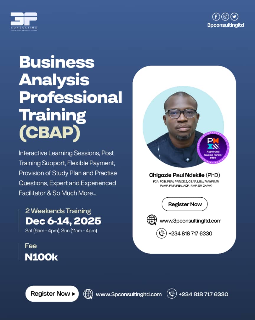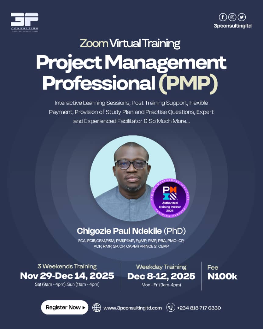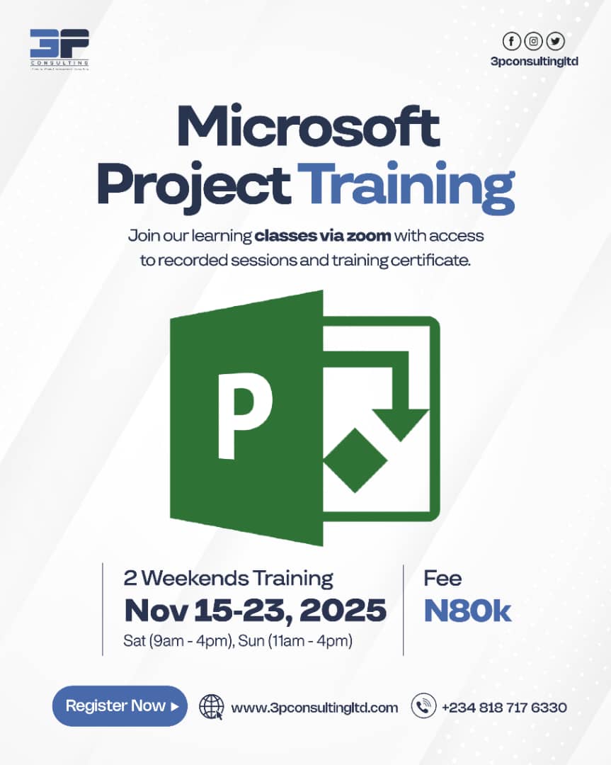 “My training experience with 3P Consulting was awesome, facilitator was well versed in project management and he really broke down the methods of project management. The class was also lively and he carried everyone along. Will definitely recommend 3P consulting Ltd to other people.”